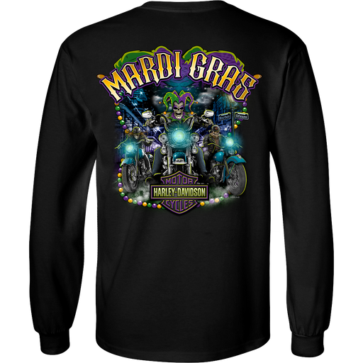Men's long sleeve shirt with custom Mardi Gras Jester Rider design.